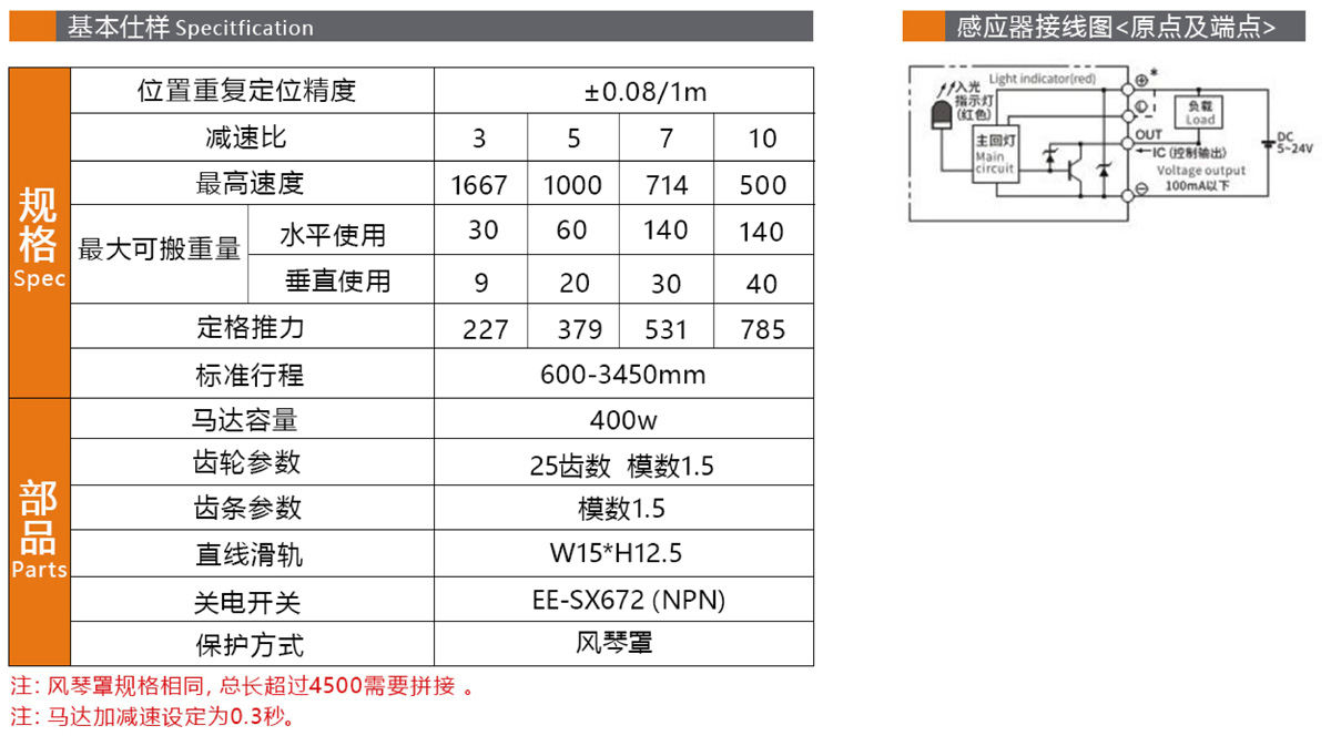 齿条齿轮直线模组性价比高,行程也长,可以有多种形式的电机装配方式,能够根据实际要求配置单、双导轨,单、双滑块,通用性强,方便搭配各个行业所需的工件,并实现设备所需的各种实用的直线运动定位功能。
